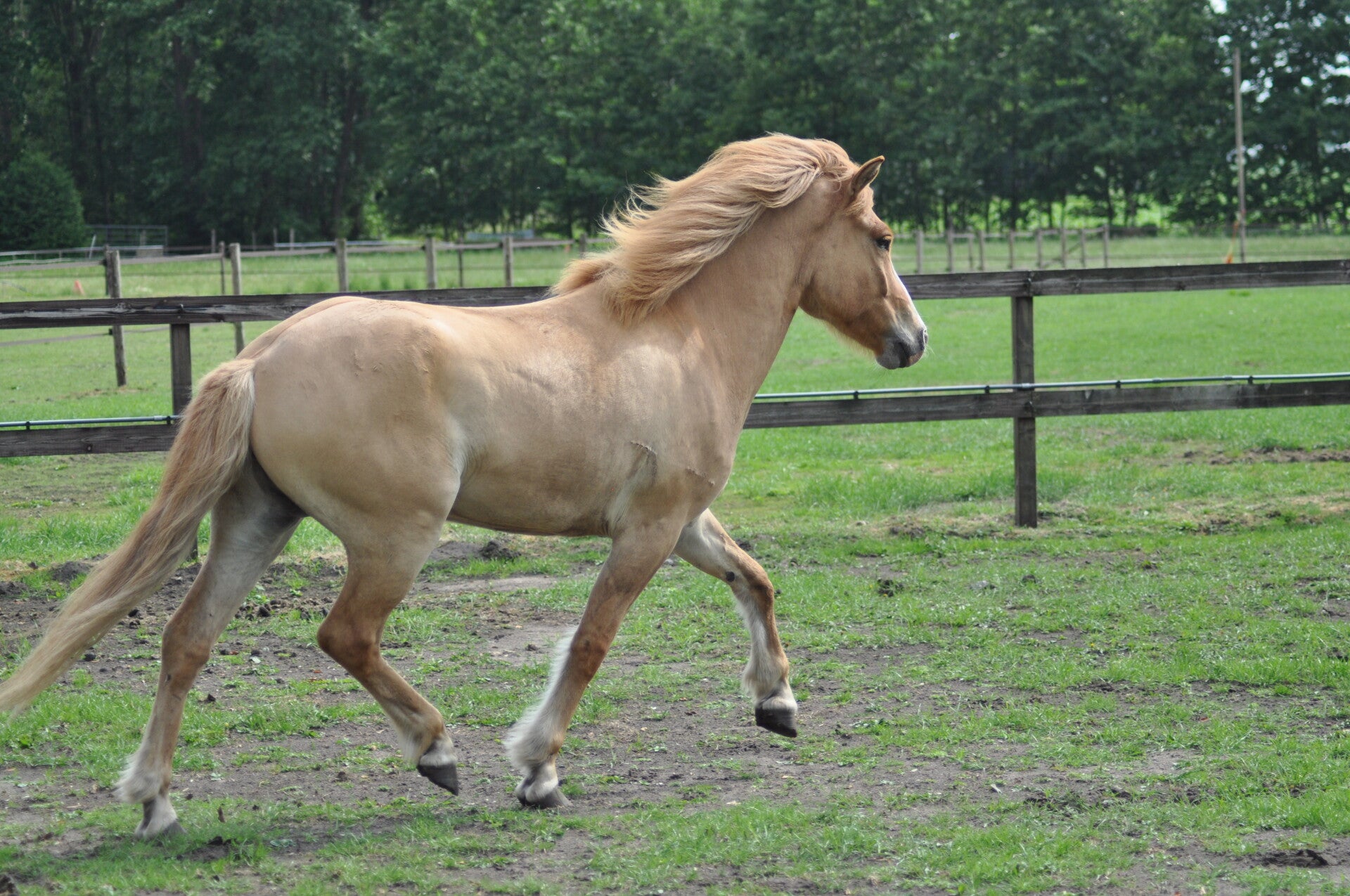 In bijlage de foto's van Fjalar, juist genomen, hij is zeker 143 cm. Hij is veelzijdig en kan door diverse mensen gereden worden, een gewillig paard met heel veel tölt.